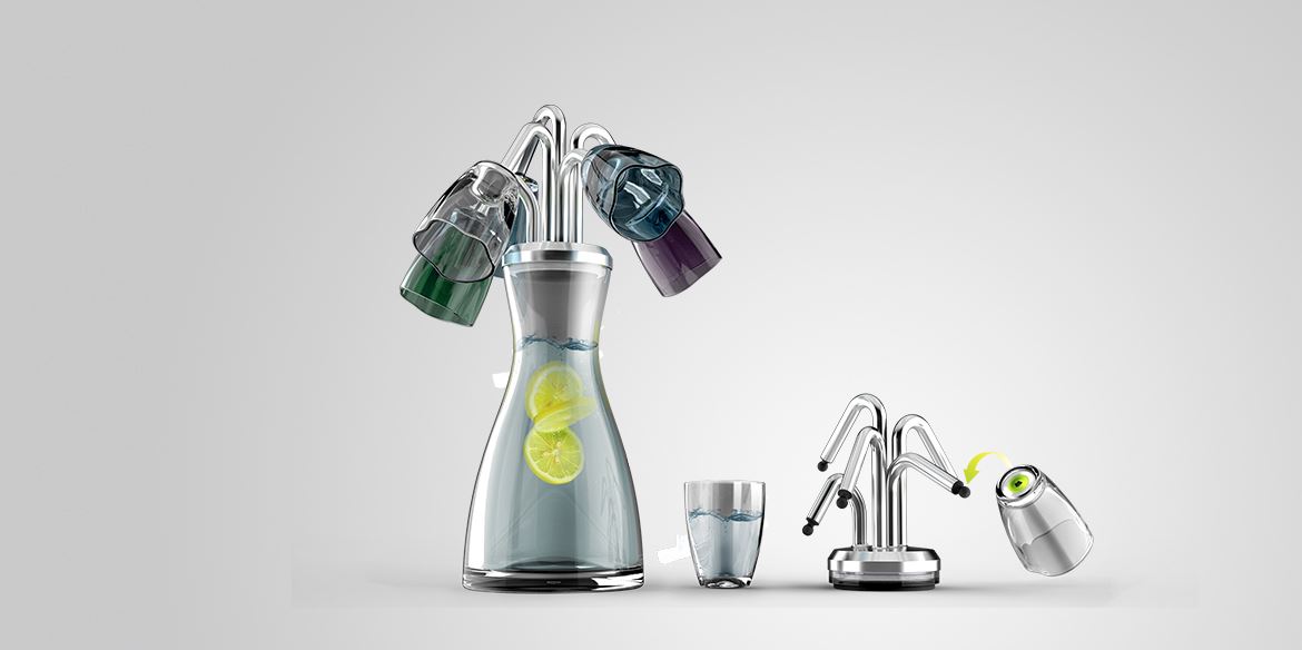 創(chuàng)意理念:迎來水與世界的全新交融,玻璃杯可謂是做足了功課。